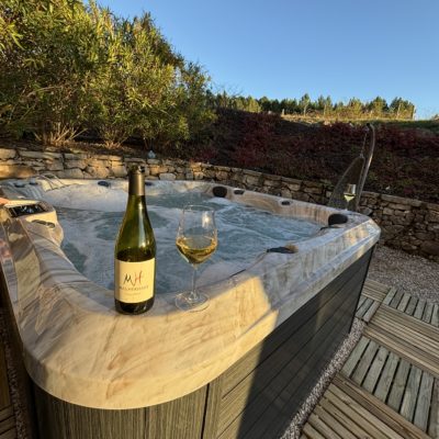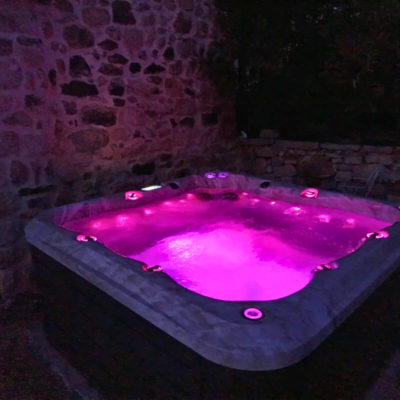 🌿 Pour un moment de pure détente, laissez-vous tenter par le spa jacuzzi privatif, doté de deux places allongées et trois assises – idéal pour se relaxer à deux, sous les étoiles.