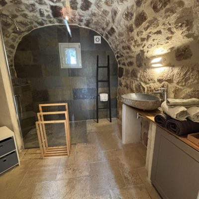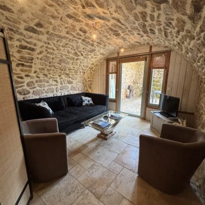 🧱 Le Grès – 40 m² pour 2 à 4 personnes : charme de la pierre apparente et ambiance cocooning. Situé au rez-de-chaussée du Mas, entièrement voûté, ce gîte peut accueillir 2 à 4 personnes :
